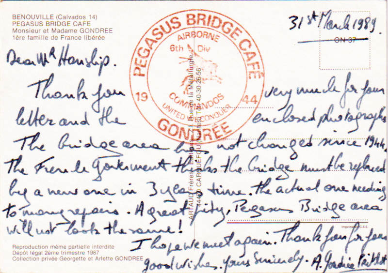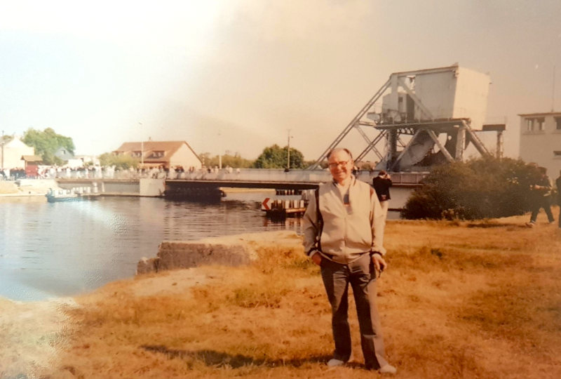 Harry Hanslip at Pegasus Bridge in 1989. Copyright: Christine Hanslip.
