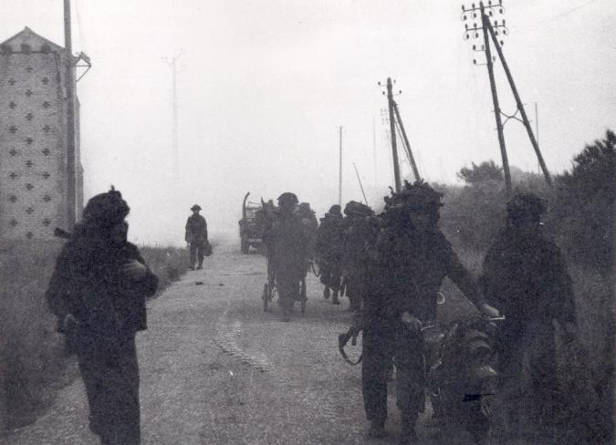 Commandos moving inland on the 6th June.