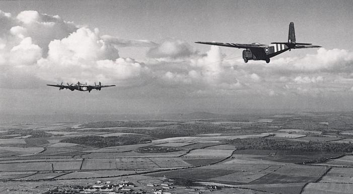 A Halifax towing a Hamilcar glider on the 6th June. Copyright: Museum of Army Flying.