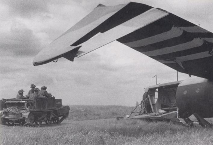 A Universal Carrier, which arrived in Normandy via Sword Beach, passes a badly damage Horsa glider on DZ-N on the 10th June on its way to Amfreville. Copyright: IWM B5343.