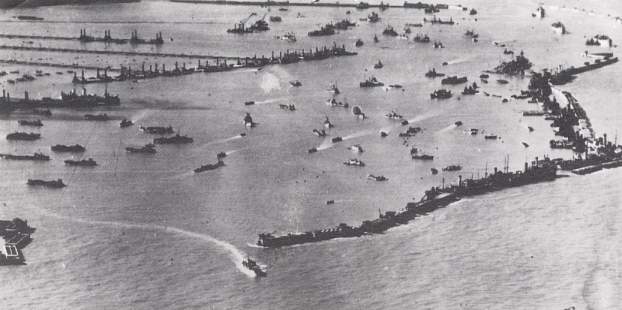 The Mulberry harbour at Arromanches, Gold Beach.