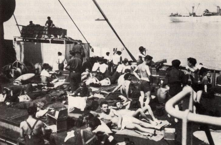 Soldiers of the 1st Belgian Brigade en route to the Mulberry Harbour at Arromanches.