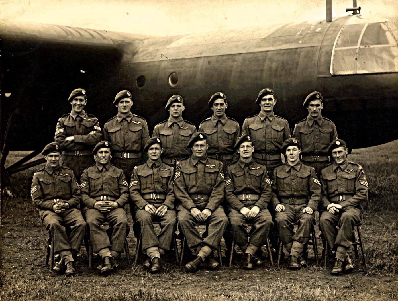 Men of the Glider Pilot Regiment, before D-Day, 1944. Staff-Sergeant Harry John Chandler sits at the extreme right of the front row. Click here for a full-size (264kb) photograph. Copyright: Richard Meakin.