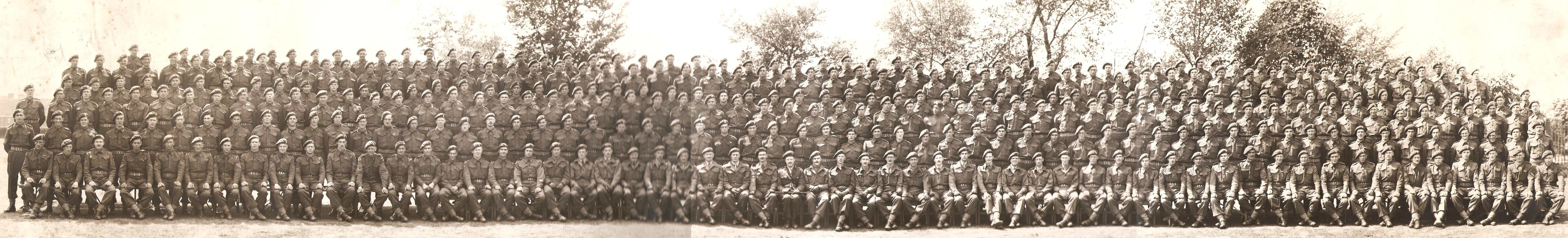 6th Airborne Divisional Signals, May 1944. Sergeant John May is 7th from the left on the front row. Click here for a full-size (1018kb) photograph. Copyright: Mike Bradshaw.