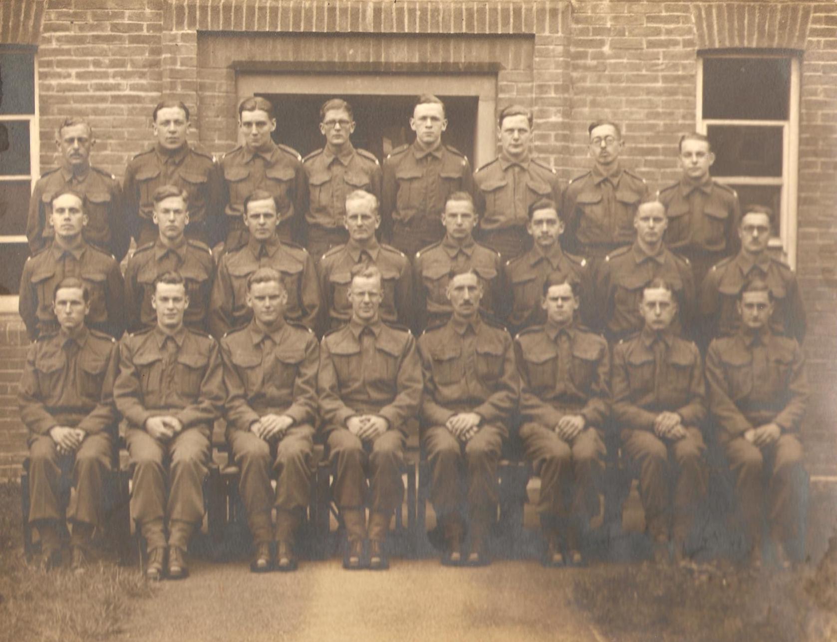 Believed to be Officers of 6th Airborne Divisional Signals. Lieutenant Norman Bradshaw is third from the right on the middle row. Click here for a full-size (187kb) photograph. Copyright: Mike Bradshaw.