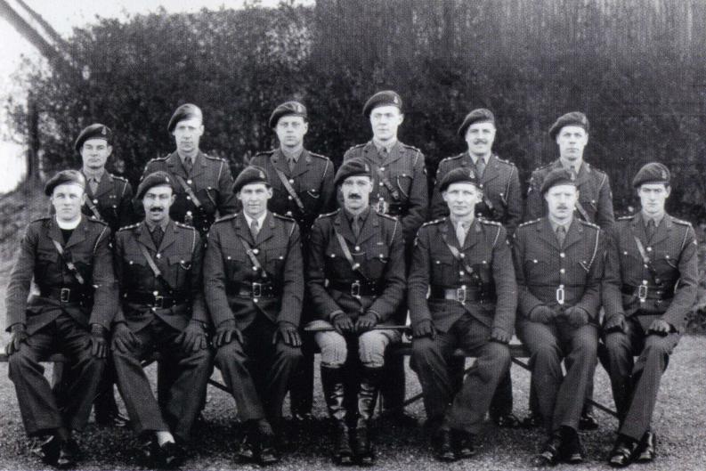 Front row: Captain/Reverend W. C. T. Briscoe (Padre, Catholic), Captain G. J. M. Holland (Dentist), Major D. H. Thompson (Second-in-Command), Lieutenant-Colonel Bruce Harvey (Commanding Officer), Captains R. R. Maitland, J. K. Wagstaff (Medical Officer) and T. M. Wilson (Medical Officer).