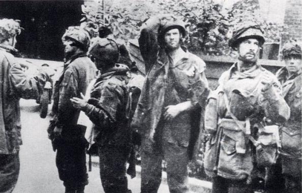Harold Padfield (extreme right) after being taken prisoner at Arnhem Bridge. Left to right: Sappers R. Orton, J. Dinnie and E. Booth (all of "A" Troop, 1st Para Squadron), Lance-Corporal A. Swainson (No.9 Platoon, 3rd Parachute Battalion), and Corporal G. Roberts (16th Parachute Field Ambulance). Copyright: Bundesarchiv.