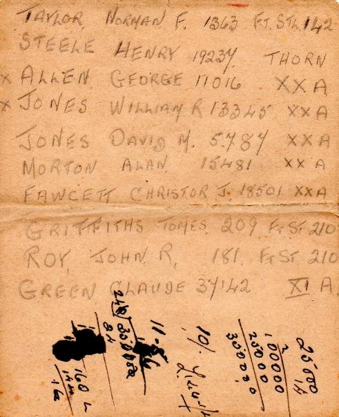 Names of prisoners in Norman Taylor's diary. Copyright: Gary Thompson.