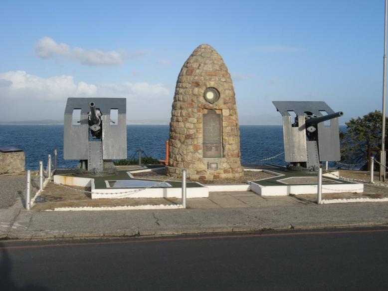 A war memorial in the village of Hermanus, South Africa. Roger Bushell's name is included both in the roll with a separate tribute on a plaque. Copyright: Freddy Philips.