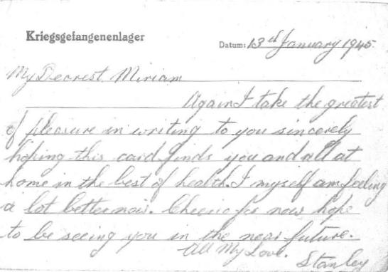 A postcard sent home by Stanley Taylor from Oflag 79. Copyright: Lorraine Wilson.