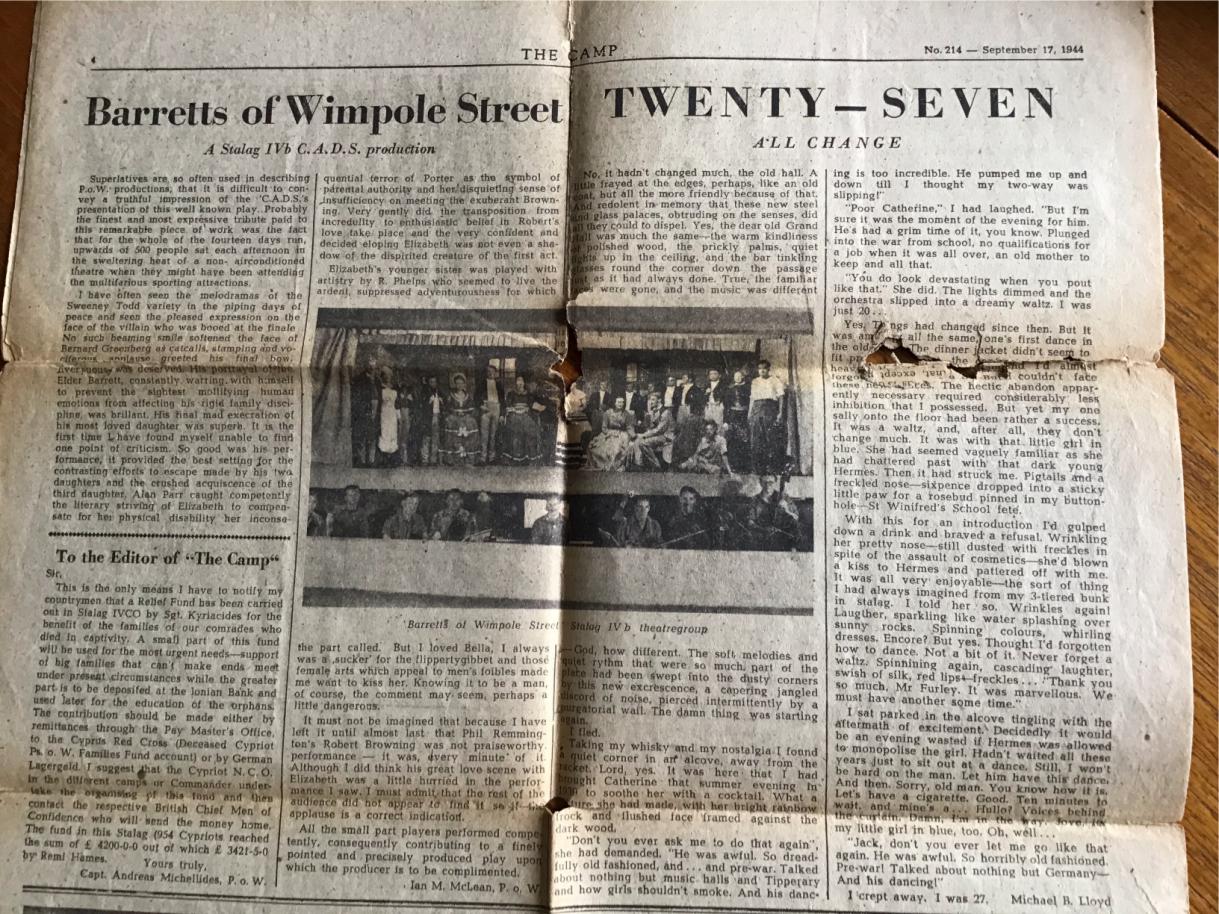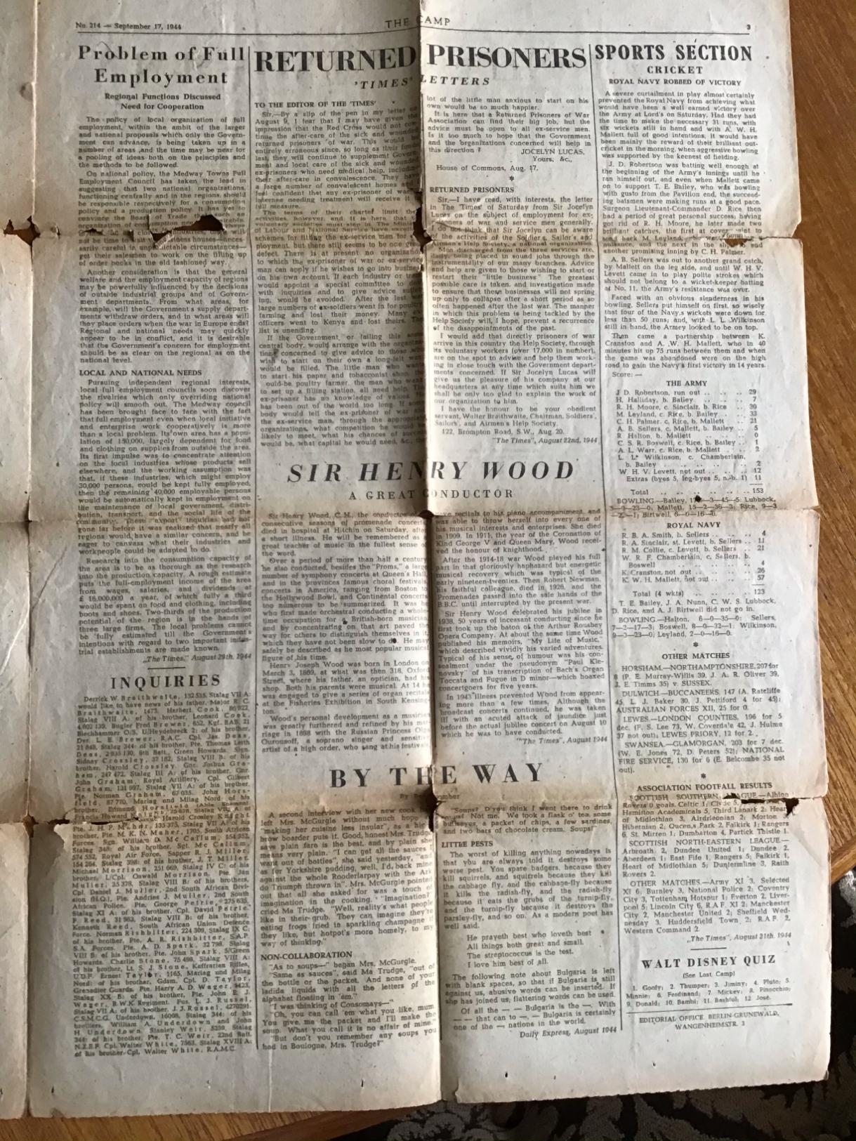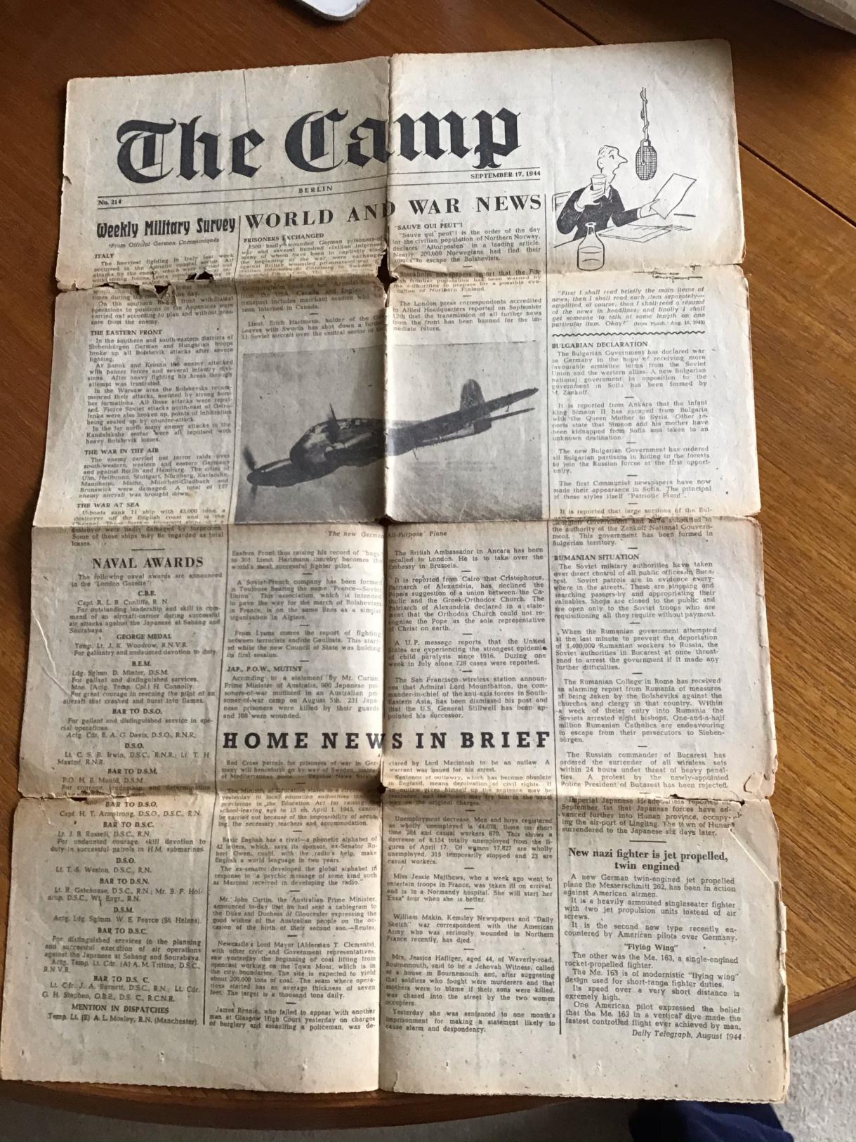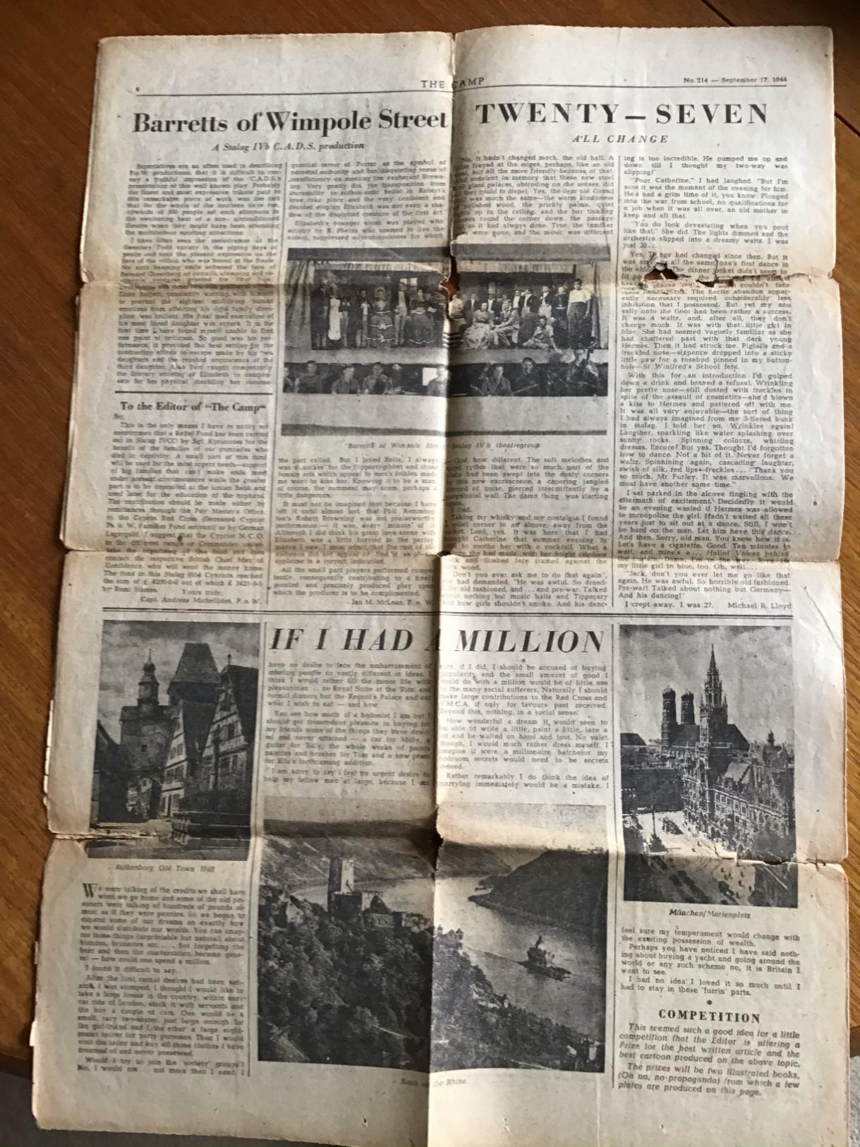 The 17th September 1944 edition of "The Camp"; a propaganda newspaper issued to prisoner of war camps. Copyright: J Daly , Secretary of IVB Ex POW association from 1967 to 1997.