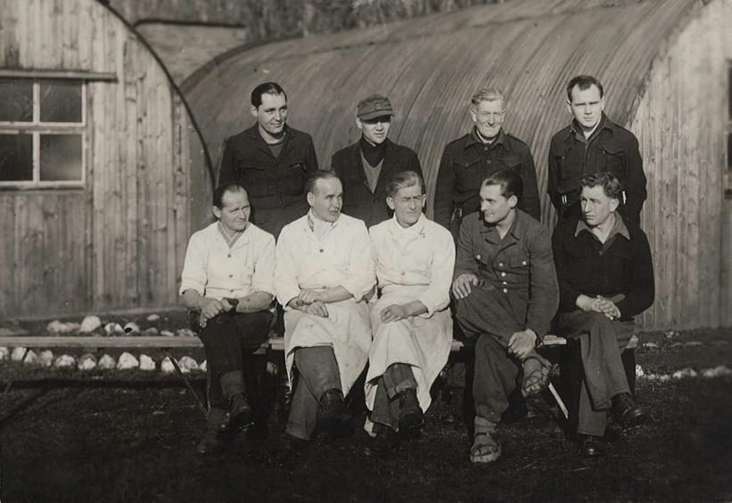 German prisoners of war in Camp 276A, which was based about 2.5 miles from 276 at Nissen Creek, and was only used briefly very late in the war when the prisoners were working at local farms. Any information regarding this photograph, please contact pegasusarchive@googlemail.com and mmdrews@web.de. Copyright: Margarete Drews.