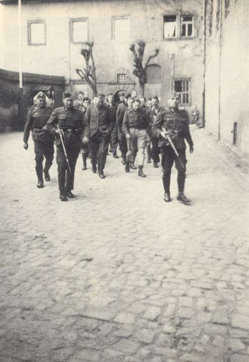 Prisoners being escorted to the park, their exercise area.