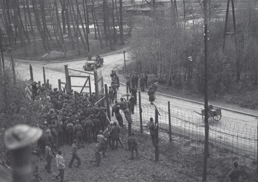 British prisoners at the moment of liberation by men of the 9th US Army on the 12th April 1945. Copyright Imperial War Museum (IWM BU 5985)