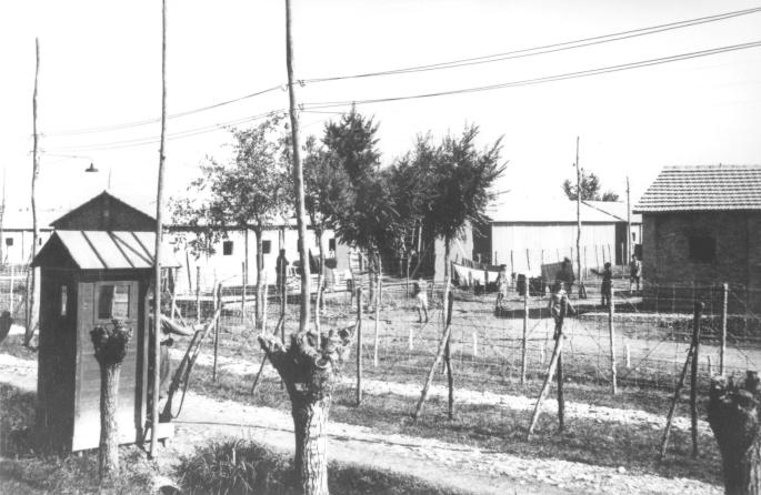 British prisoners at P.G. 73 in 1942. Note the Italian guard on duty to the left. Copyright: Mauro V. Quattrina.