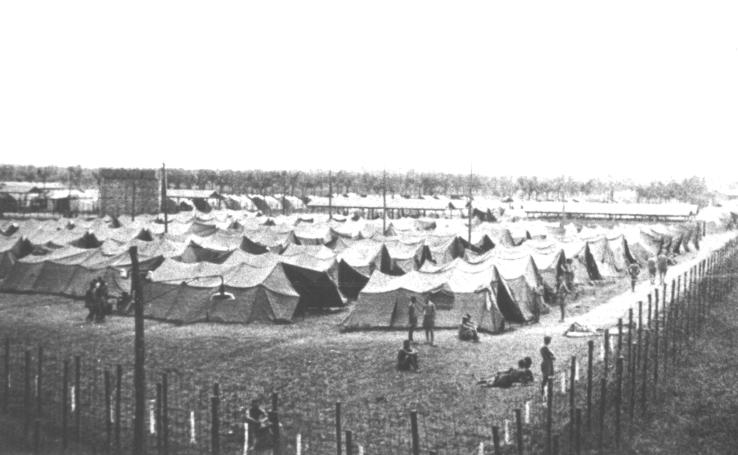 British prisoners with their tent accommodation in 1942, proper barrack huts were constructed later. Copyright: Mauro V. Quattrina.