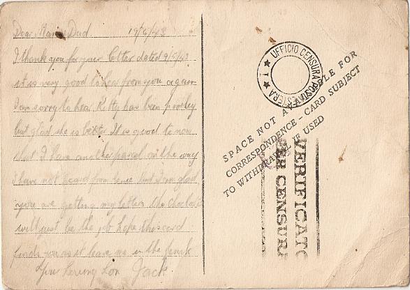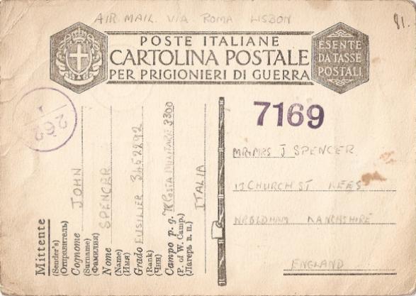 A letter sent home by Fusilier John Spencer on the 19th June 1943. Copyright: Brian Finch.