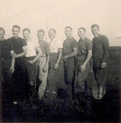 Belgian prisoners of war. Jean Pierre Brack, of the 1st Régiment de Chasseur Ardennais, captured on the 28th May 1940, is partially visible on the extreme left of the photo. Copyright: Richard Frognier.