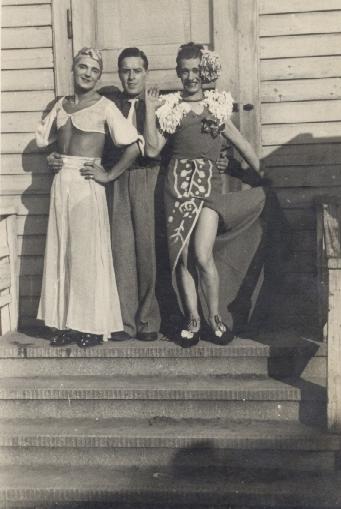 Three prisoners in costume for a theatrical production. Copyright: Ange Goubin, no. 66720.
