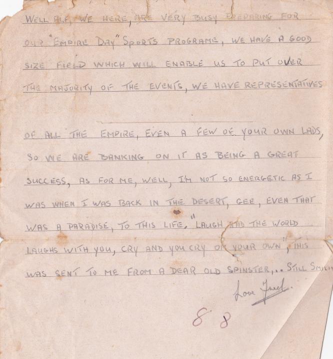 A photograph sent home with a letter (below) by Corporal Fred Barlow (believed to be the man on the right below, and most probably one of the men above) to his brother Alfred in Canada. Copyright: Shaun Lindsay.