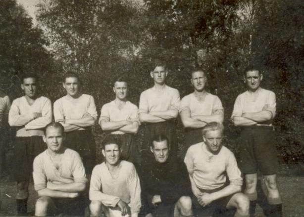 A British football team. Marine Albert Mullard stands at the back, second from the right. Copyright: Karl Flavell.
