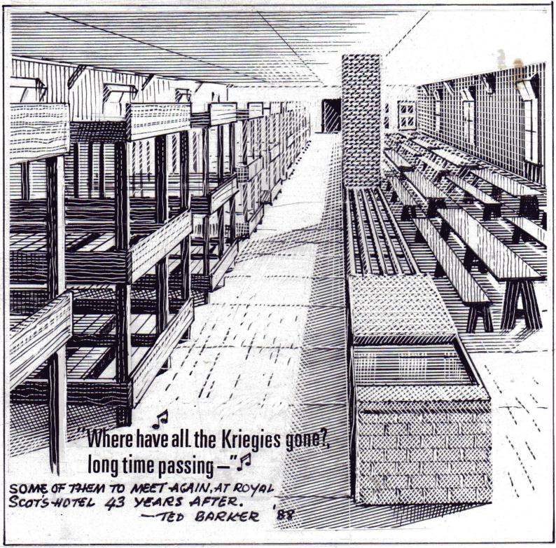 A drawing of a typical hut interior. Copyright: J Daly, Secretary of IVB Ex POW association from 1967 to 1997.