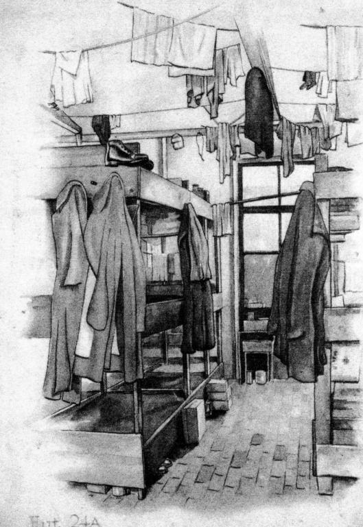 Two sketches of Hut 24a. Copyright: J Daly, Secretary of IVB Ex POW association from 1967 to 1997.