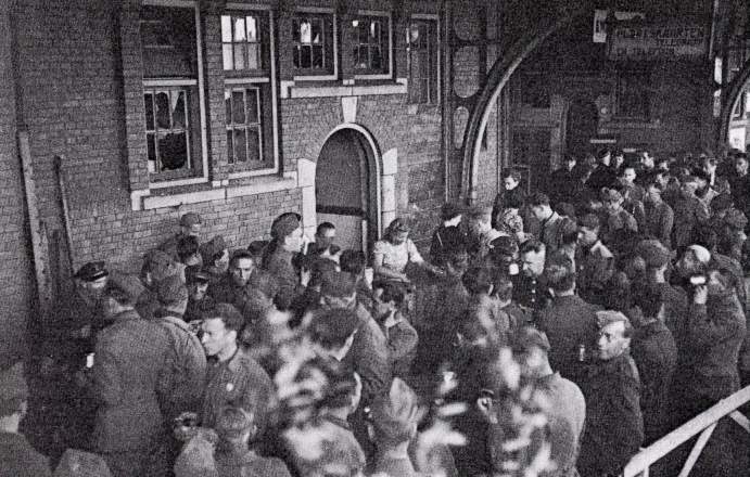 Almost home after the War, Dutch prisoners wait at Weert railway station. Copyright: Anne Jans.
