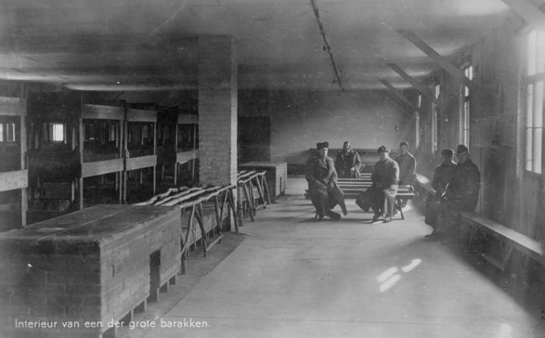 The interior of a hut. The photograph was one of several taken by a Dutch prisoner, N. Uchtmann, who turned his pictures into postcards after the war.