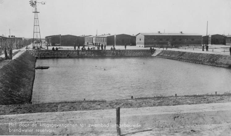 The swimming pool. The photograph was one of several taken by a Dutch prisoner, N. Uchtmann, who turned his pictures into postcards after the war.