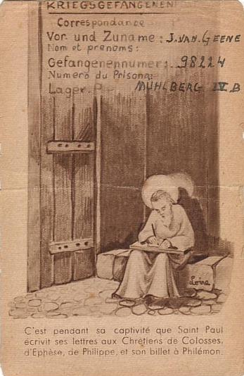 A Roman Catholic "Prayer for the Prisoners" leaflet from Stalag IVB, given to Johannes Cornelius Van Geene, of Schiedam, the Netherlands. Copyright: Peter Van Geene.