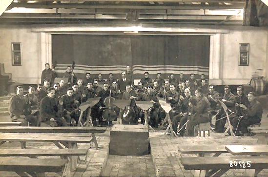 The Mühlberg Symphony Orchestra in 1945, conducted by Alan Bolt. Taken from the diary of Trooper Joseph Winterbottom of the 11th Hussars. Copyright: John and Maggie Robertson.