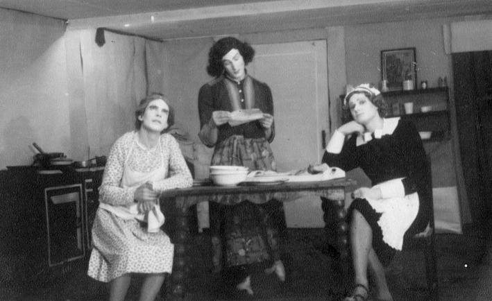 A scene from "Between the Soup and the Savoury". The actors are Bill Bickerstaff, Les Davidson and Jim MacFarlane. Copyright: Hilary Spon.
