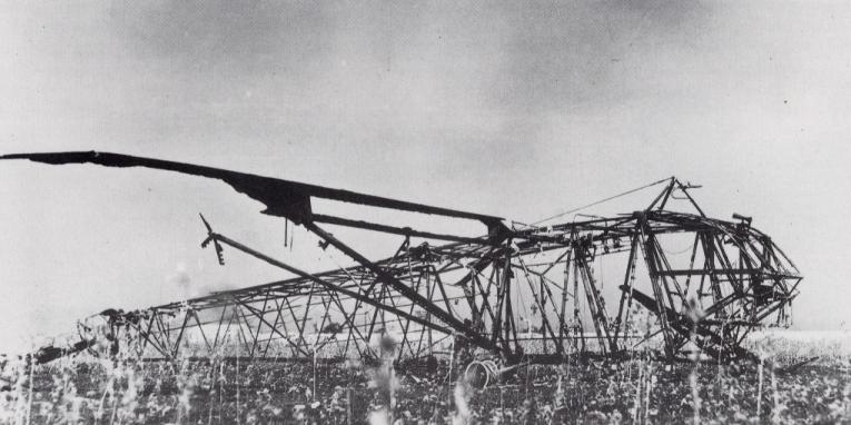 A Waco glider in Sicily, July 1943, gutted by fire. Copyright: US Air Force Photo Collection (US Neg No 25289 AC), courtesy of The National Air and Space Museum, Smithsonian Institution.