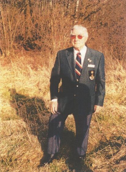 Godfrey Yardley on the spot where his glider crashed during Operation Varsity. Taken on the 60th anniversary of the battle, 2005. Copyright: Godfrey Yardley.