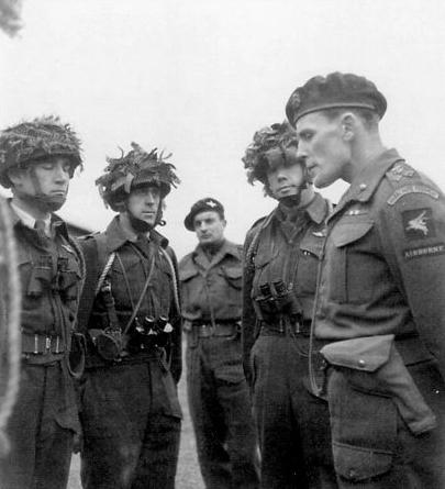 James Hill (far right) at Bulford Camp on Salisbury Plain, 4th December 1943, with Captain R.A. MacDonald, Captain Peter Griffin, and Major J.A Nicklin.