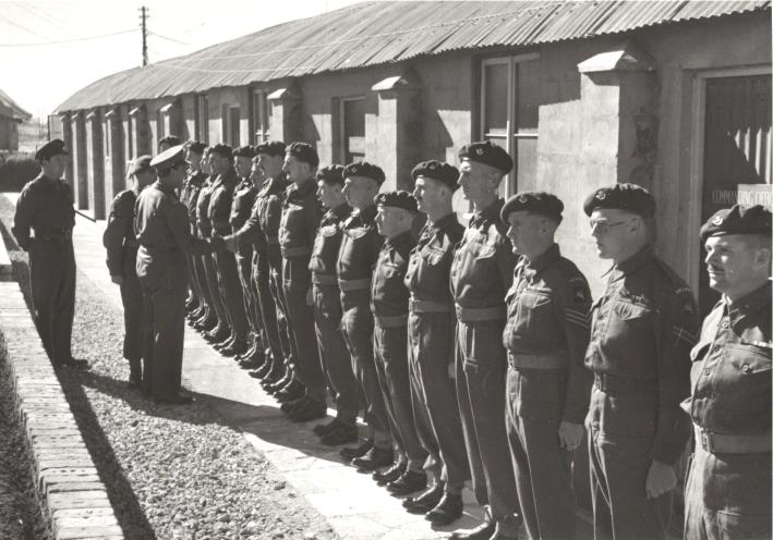 General Sir Bernard Paget meeting officers and NCOs of the 2nd Battalion The Oxfordshire and Buckinghamshire Light Infantry in Palestine on the 29th December 1945. Standing on the extreme right of the photograph is RSM, later Major John Stevenson MBE DCM. Copyright: IWM E31581.