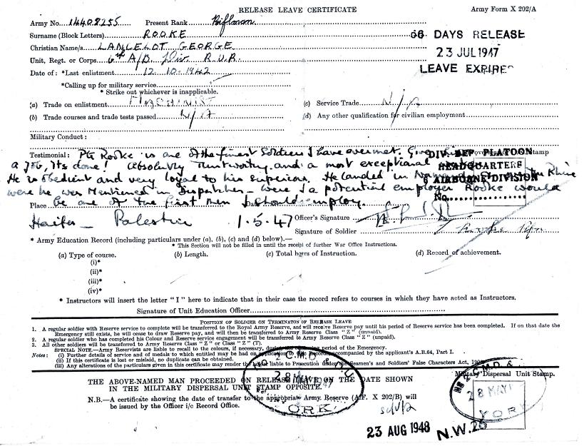 Lance Rooke's discharge certificate. Copyright: Lance Rooke.