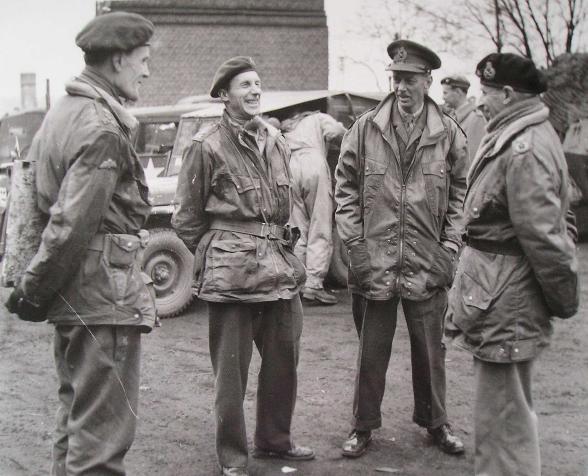 Left to right: Brigadier Hill, Major-General Bols, General Dempsey and Field Marshal Montgomery. Taken on the 28th March 1945. Larger image. Copyright: Imperial War Museum.