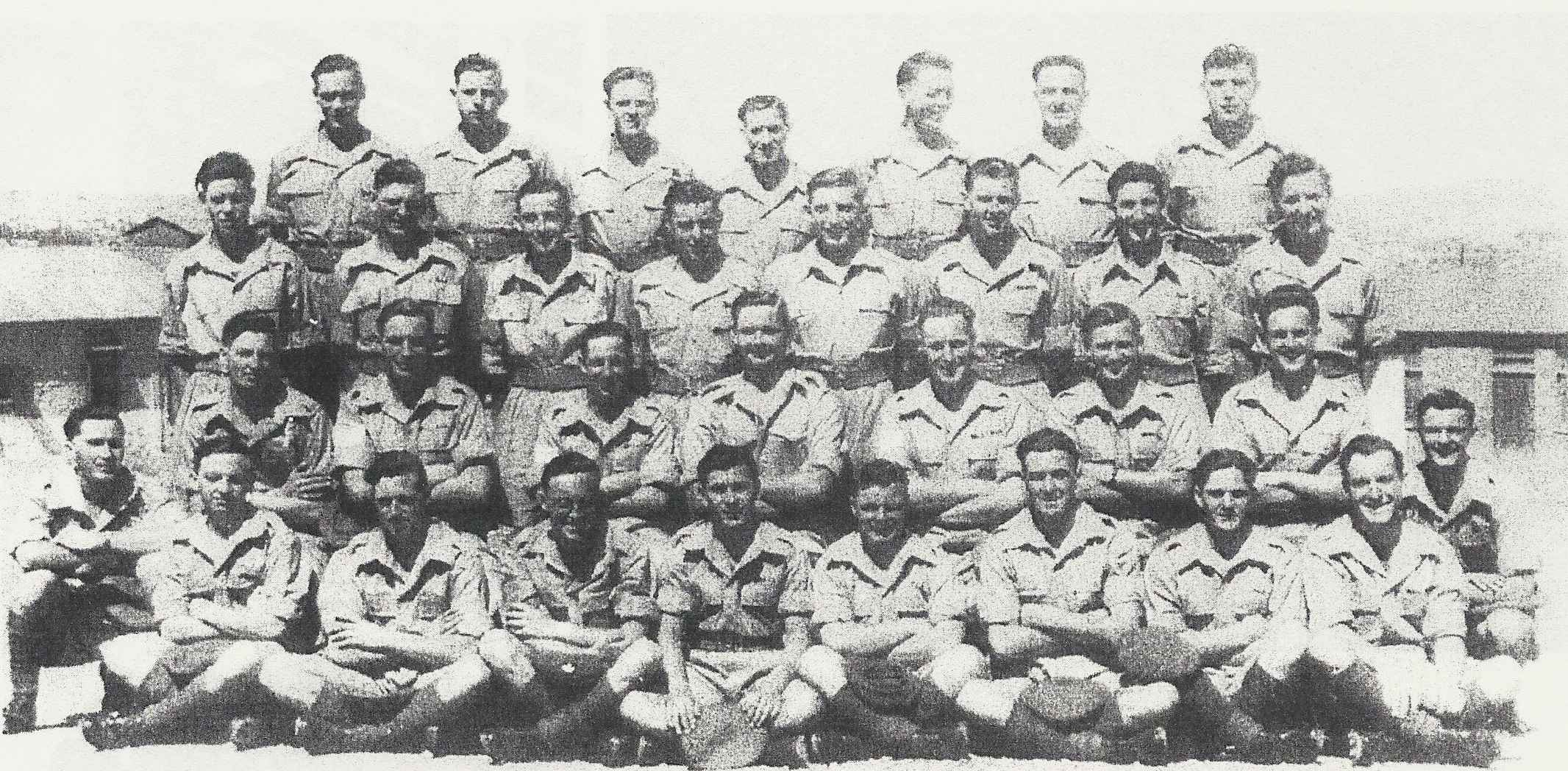 No.12 Platoon, "B" Company, 2nd Battalion The Oxfordshire and Buckinghamshire Light Infantry, taken in Jerusalem, 1946. Click here for a full-size (367kb) photograph. Godfrey Yardley sits first from the left on the front row. Copyright: Godfrey Yardley.