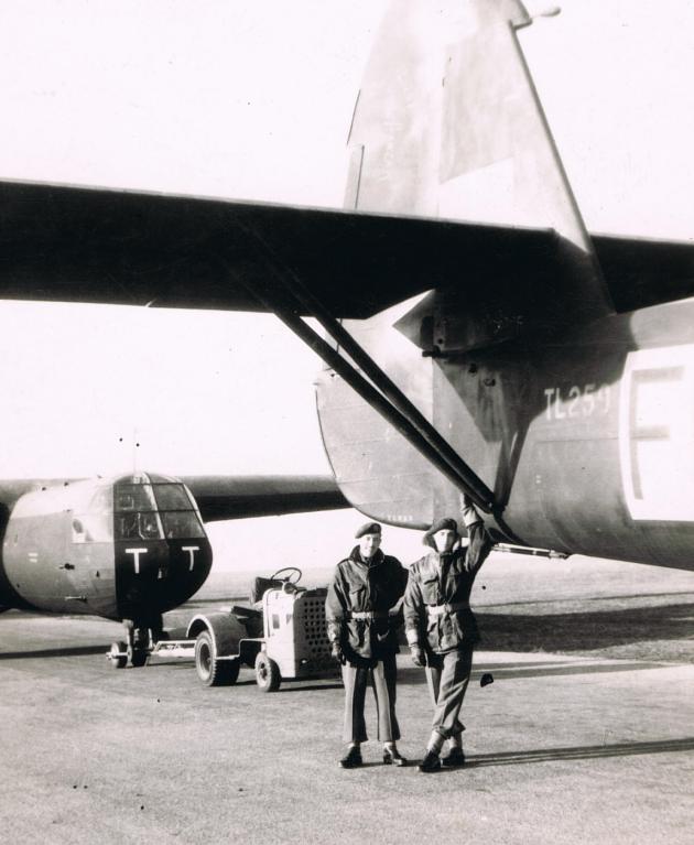 Sergeant Milton-Millar (left) standing beside a MkII Horsa glider. Larger image. Copyright: Trish Richardson.