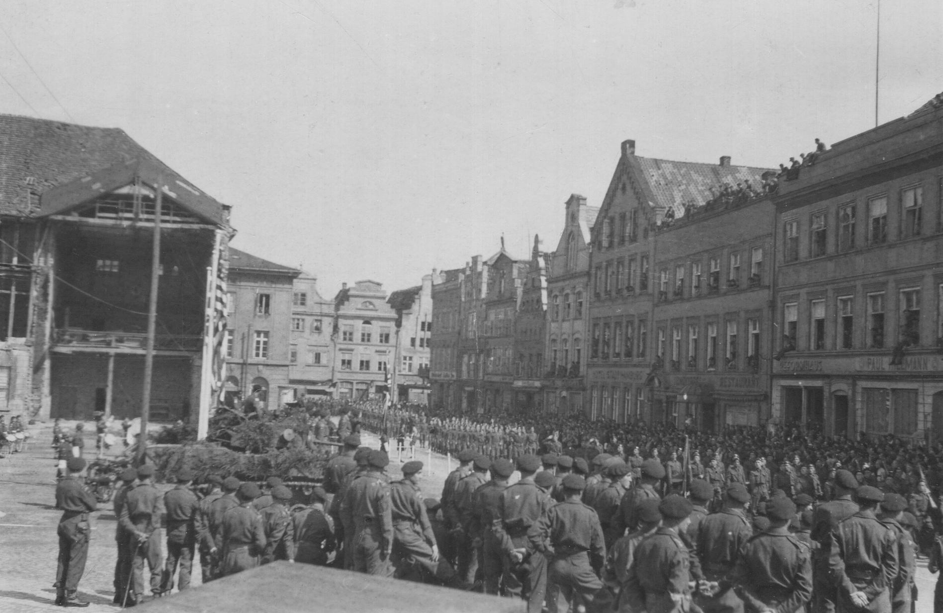 The Victory Parade in Wismar, 11th May 1945. Larger image. Copyright: Mike Adams.