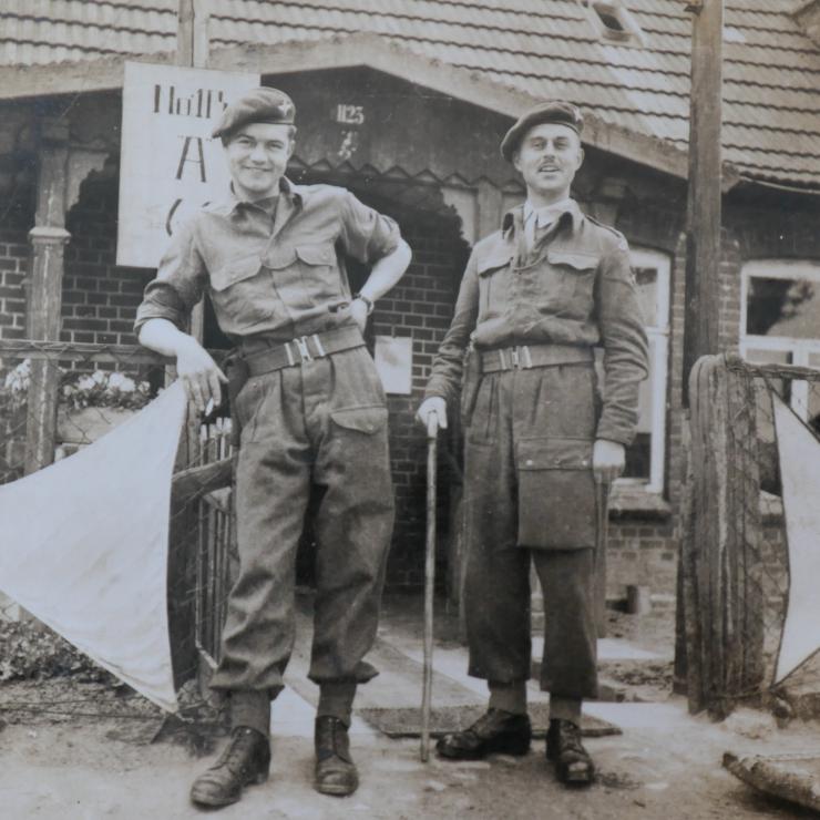 Lieutenants Fred Tiramani (Transport Officer, Headquarters Company) and Basil Disley ("C" Company) of the 13th Parachute Battalion, in Germany. Copyright: Phil Neath.
