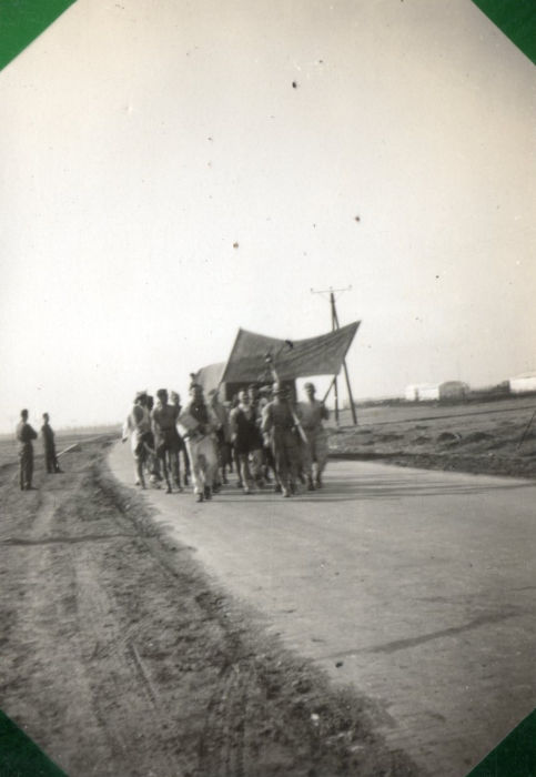 "The 8th Bn Sgts team march back triumphantly". Larger image. Copyright: John Speakman.