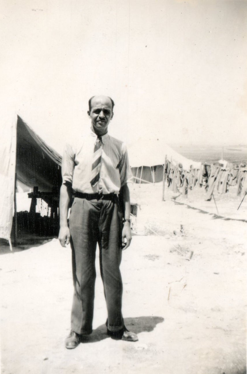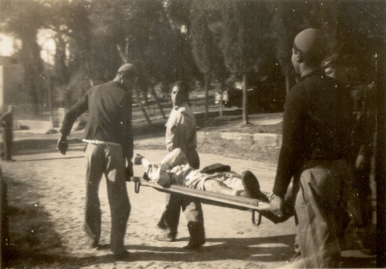 "These two blew up a rly bridge in Gaza. And with 29 companions were caught by the 8th Para Bn Rgt. at Bat-Yan. All were sentenced to 15 yrs at a Jerusalem court-martial."